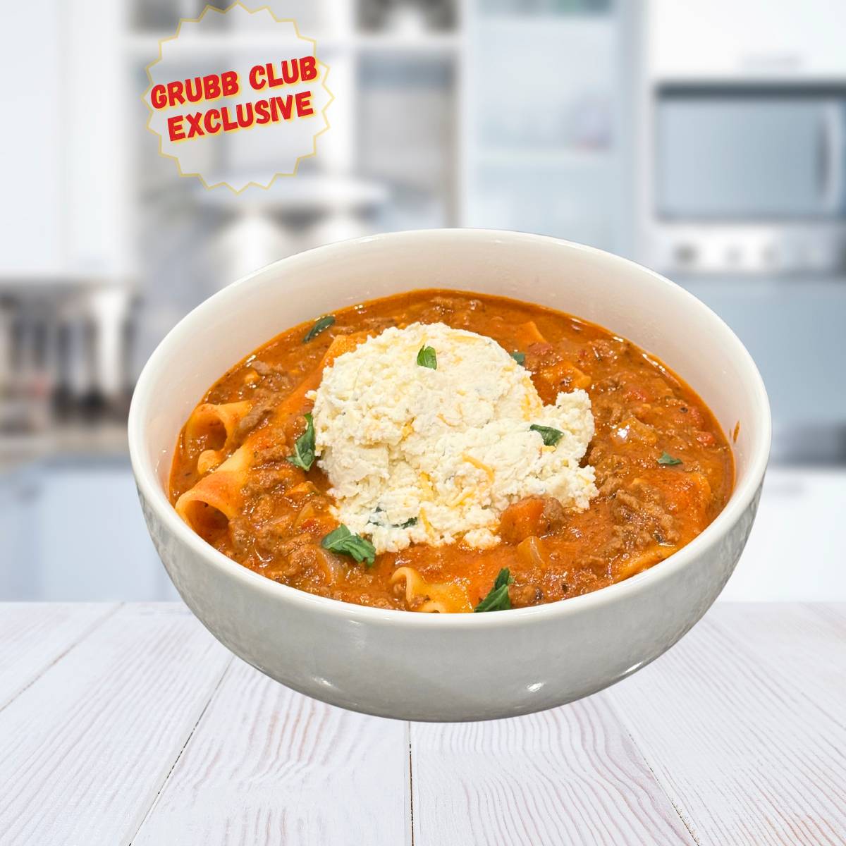 Lasagna Soup - It's been a cold, gloomy week in Charlotte so I was craving soup. This Lasagna Soup is the way to go. It’s got all the good stuff you love in classic lasagna in a rich tomato broth, tender pasta, flavorful beef, and a scoop of creamy ricotta all in one pot. It comes together easily, makes plenty, and is perfect for busy weeknights or meal prepping for the week. I added my full recipe over on my website exclusive for my Grubb Club members.